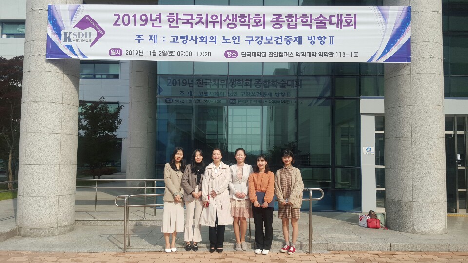 고령사회의 노인 구강보건중재 방향 주제로 열린 한국치위생학회 종합학술대회 (2019년 11월 2일) 학생 학술포스터 경진대회에서 최우수상 1팀, 장려상 2팀 수상했습니다
