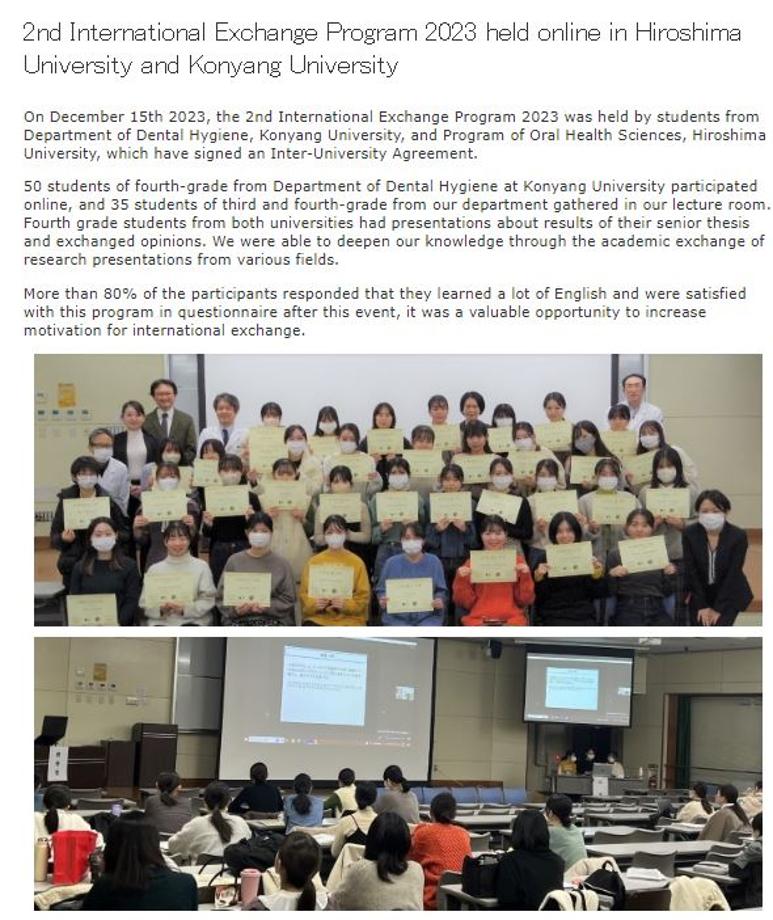 지난 12월 15일 23학년도 히로시마 대학과의 온라인 학술교류가 있었습니다