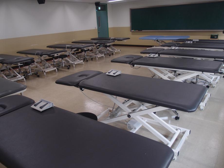 여러개의 보바스 테이블이 구비되어있습니다. 치료사가 직접 손을 이용하는 Massage(마사지), Taping(테이핑), 각종 Manual Therapy(도수치료)등의 수업을 진행하는 장소입니다. |