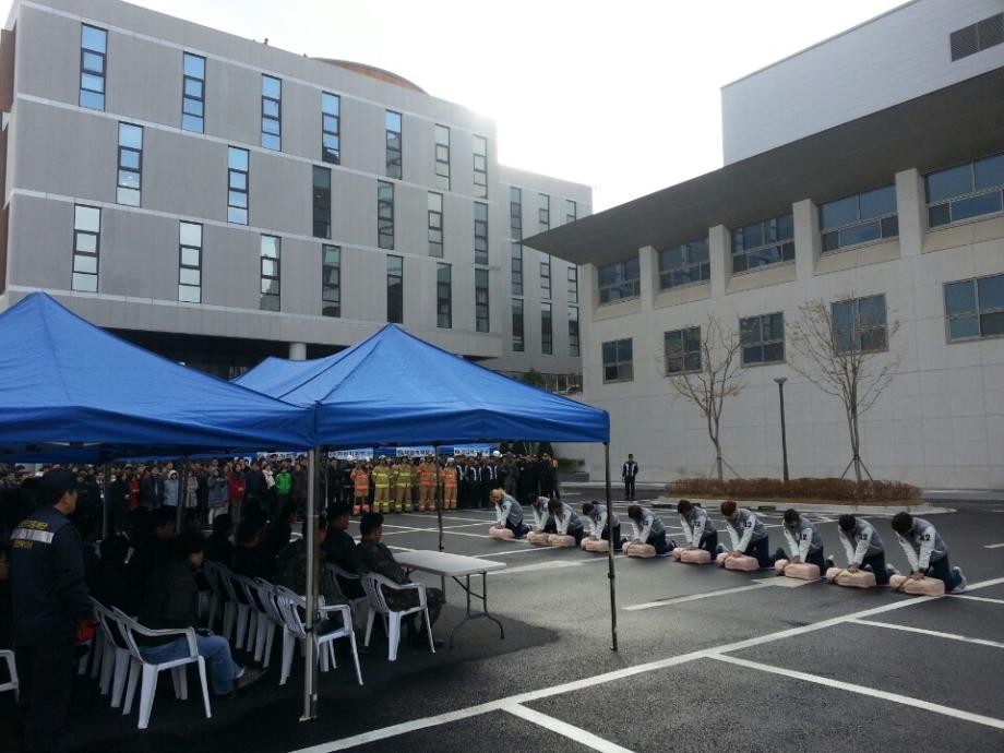 2013년 11월 19일 대전 핵융합연구소 (NFR)I에서 실시한 긴급구조 종합훈련에서심폐소생술을 시연해 |