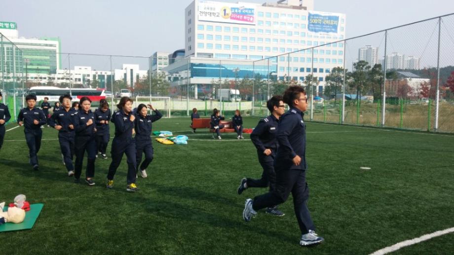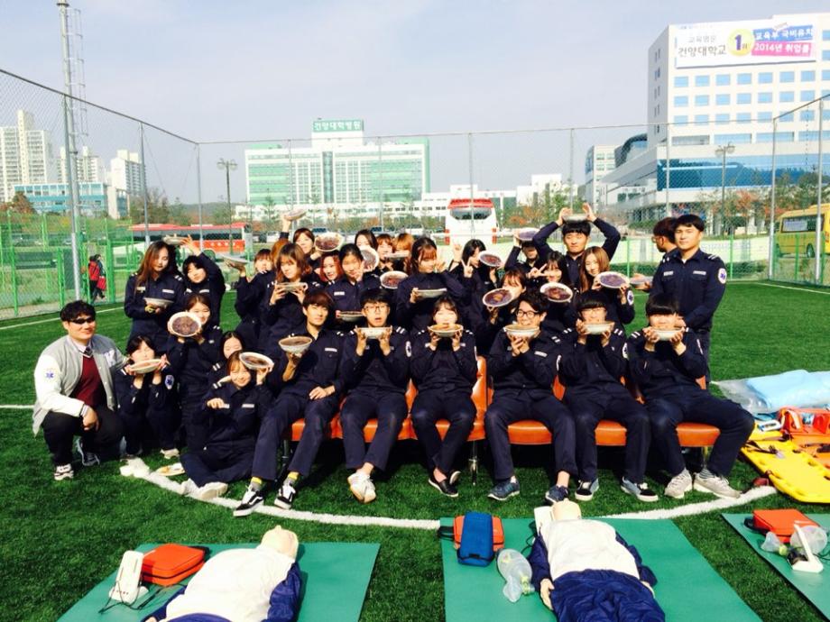 13학번 학생들이 구조와 이송 야외수업을 받는 모습. |