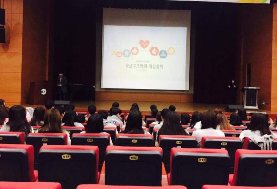 2017.03.09 응급구조학과 개강총회가 있었다. 박정희 교수님과 윤병길 교수님이 부임하셨다.