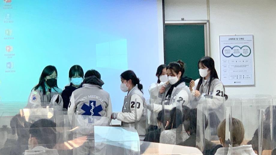 3/2 미니 입학식 & 교수님 특강 3/3 응답하라 EMT (학생회 소개 및 과잠 수요조사) 3/4 건양대학교 대전 캠퍼스 탐방 3/8 학과 전공 미리 배움터 ( Level D착용, 손위생 테스트, 배근력 및 악력 테스트, 심폐소생술 교육) 3/11 새내기 체육대회 3/14 졸업생 선배님 특강 (소방청 노재욱 선배님, 의료기관 강소현 선배님) 3/15 동기유발 레포트 작성 |