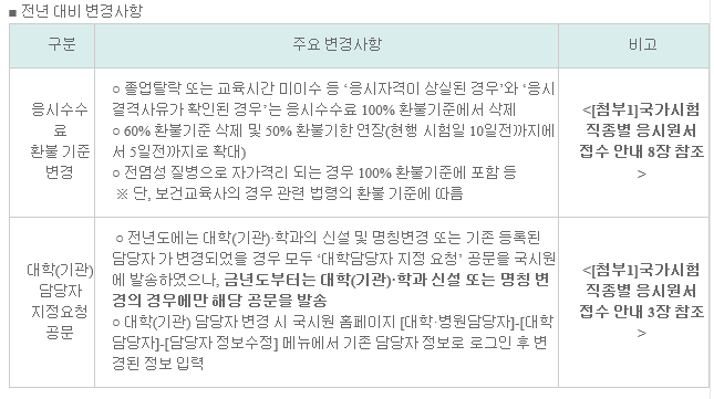2020년도 하반기 및 2021년도 상반기 보건의료인국가시험 직종별 응시원서 접수 관련 안내사항을 첨부파일과 같이 안내하오니 접수 준비에 만전을 기하여 주시기 바랍니다.