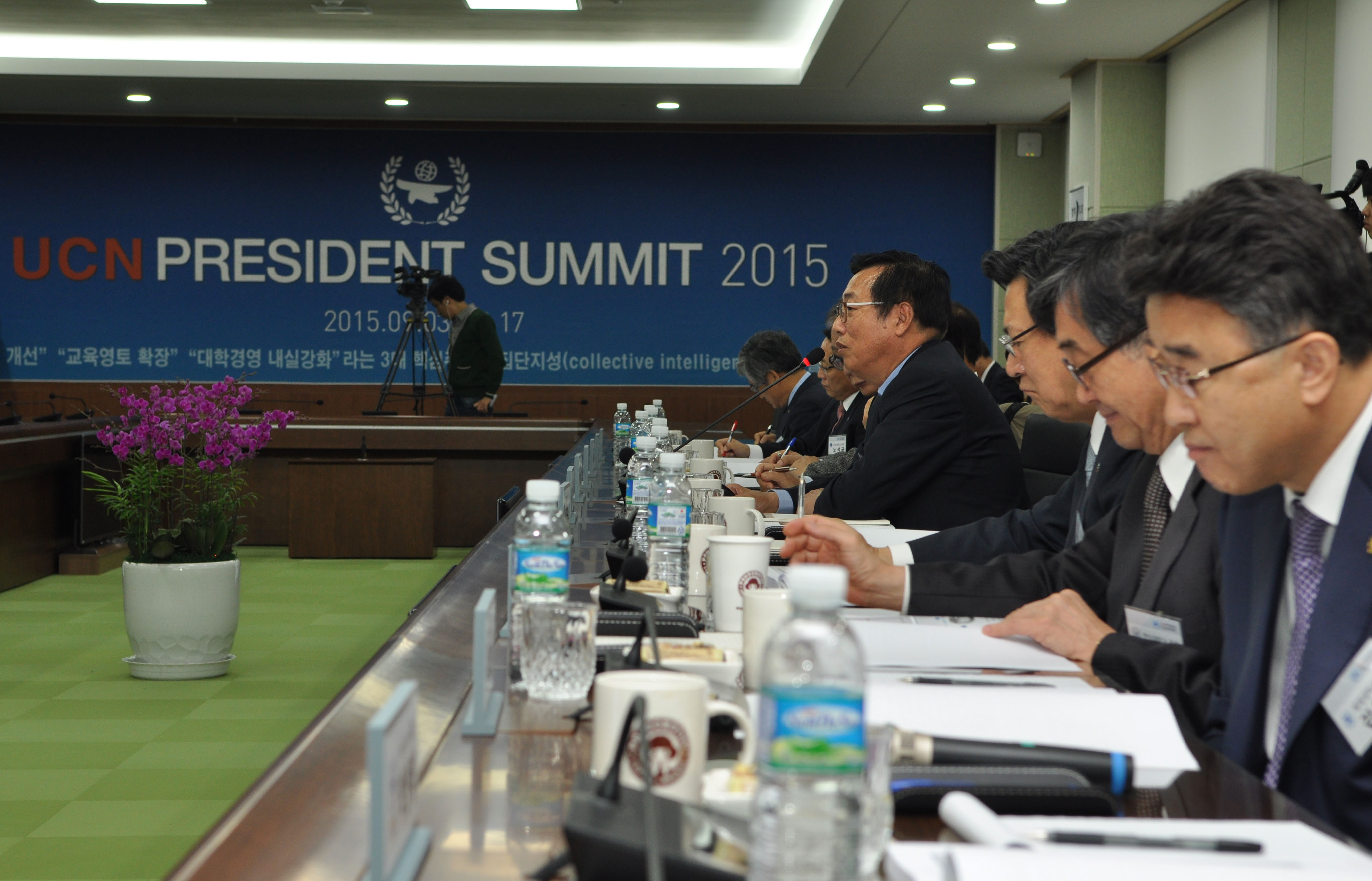 건양대에서 대학경쟁력 강화 위한 컨퍼런스 열려 건양대(총장 김희수)는 19일 대전 메디컬캠퍼스 죽헌정보관에서 전국 대학 총장 20여명과 대학관계자 200여명이 참석한 대학경쟁력네트워크 프레지던트 서밋(UCN PRESIDENT SUMMIT) 제4회 콘퍼런스가 열렸다고 밝혔다. 한국대학신문이 주최하는 이번 행사는 학령인구 감소로 대학의 위기가 가속화되는 가운데 해결방법을 모색하고 미래변화에 따른 고등교육 방향을 제시하기 위해 열렸으며 지난 9월 첫 행사가 열린 이후 이번이 네 번째다. 이날 행사는 오전 유기풍 서강대총장의 ‘산학협력 친화형 대학 운영 시스템 및 재정 건전화 방안’에 대한 발표를 시작으로 패널토론이 진행됐다. 오후에는 교육부 대학정책 관계자 및 교육정책 전문가가 참석한 가운데 한석수 교육부 대학정책실장이 ‘대학구조개혁 추진방향과 대학의 미래’를 주제로 발표했다. 이어 배상훈 성균관대 교수의 ‘정부재정지원사업 현황과 대학대응전략’, 정영길 건양대 부총장의 ‘정부지원사업 사례(건양대)’, 송희영 건국대 총장의 ‘고등교육 국제화 추진사례(건국대)’, 홍철 대구가톨릭대 총장의 ‘교육시장 다변화 추진사례(대구가톨릭대)’ 등 사례발표도 이어졌다. 건양대 김희수 총장은 “대학 경쟁력을 키우기 위한 중요한 회의가 건양대학교에서 열리게 돼 매우 막중한 책임을 느낀다. 오늘 컨퍼런스를 계기로 우리나라 대학의 건전한 개혁과 상생의 방안이 나오기를 바란다”고 밝혔다. 이날 참석한 대학 및 참석한 총장과 부총장 명단 가천대 조효숙 부총장, 건국대 송희영 총장, 건양대 김희수 총장, 건양대 김용하 부총장, 경기대 김기언 총장, 경동대 전성용 총장, 대구가톨릭대 홍철 총장, 대구대 홍덕률 총장, 동서대 장제국 총장, 목원대 박노권 총장, 배재대 김영호 총장, 삼육대 김상래 총장, 서강대 유기풍 총장, 선문대 황선조 총장, 안양대 김석준 총장, 영남대 노석균 총장, 원광대 김도종 총장, 한국기술교대 김기영 총장, 한국산업기술대 이재훈 총장, 한신대 채수일 총장, 호원대 강희성 총장(가나다순)