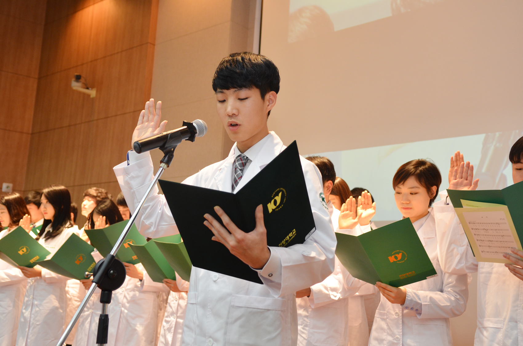 건양대 의과대학, ‘화이트가운 세레모니’ 개최 인술을 펼치는 참된의사로서의 길 다짐 건양대학교(총장 김희수)는 20일 건양대학교병원 암센터 5층 강당에서 의학과 재학생과 학부모, 교수 등 200여명이 모인 가운데 참된 의사로 가겠다고 다짐하는 ‘2016 화이트 세레모니’를 열었다. 화이트가운 세레모니란 건양의대 학생들이 중심이 되어 매년 개최하는 학과 전통행사로서 의과대학 5학년 학생들이 임상실습을 앞두고 의사의 상징인 흰가운을 입고 예비의사로서 명예와 자부심을 다짐하는 자리다. 이날 세레모니에서 건양대 김희수 총장과 건양대 최원준 의과대학장이 직접 학생에게 횐가운을 입혀주는 것을 시작으로 의과대학 모든 교수들이 학생 한명 한명에게 직접 화이트가운을 입혀줬다. 또한 재학생들의 학부모들도 참석해 함께 화이트 가운을 입혀주고 부모의 마음이 적혀있는 편지를 전달하는 뜻깊은 시간을 가졌다. 세레모니가 끝난 뒤에는 횐 가운을 입은 학생들이 좋은 의사가 되겠다는 굿 닥터 선서식을 했다. 김희수 총장은 이날 직접 흰가운을 입혀주면서 “의사의 본분은 인술이며 희생정신을 갖춘 진정한 의사가 되길 바란다”고 밝혔다. 최원준 의과대학장은 “오늘 화이트가운 세레모니가 질병이 아닌 사람을 치료하는 의사의 시발점이 되길 바란다”고 말했다. 의과대학 5학년에 올라가는 과대표 정일(만 22세)는 “많은 교수님들과 부모님, 동기들 앞에서 횐가운을 입고 굿닥터 선서문을 낭독한 만큼 좋은 의사가 되겠다는 지금 마음을 잊지않고 인술을 펼치기 위해 더욱 더 노력하겠다”고 밝혔다.