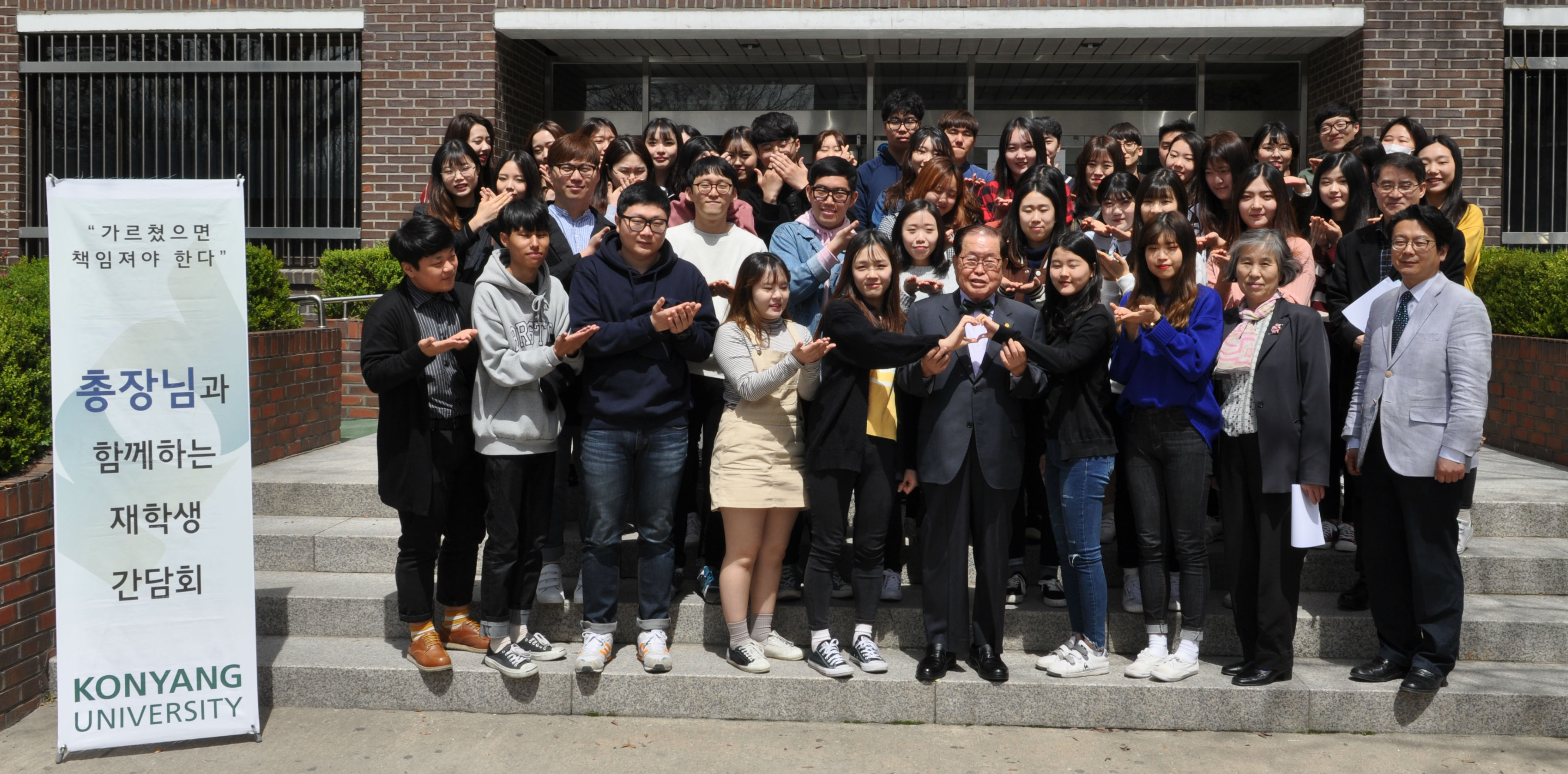 간담회를 마친 김희수 총장과 학생들이 함께 기념촬영을 하는 모습.JPG