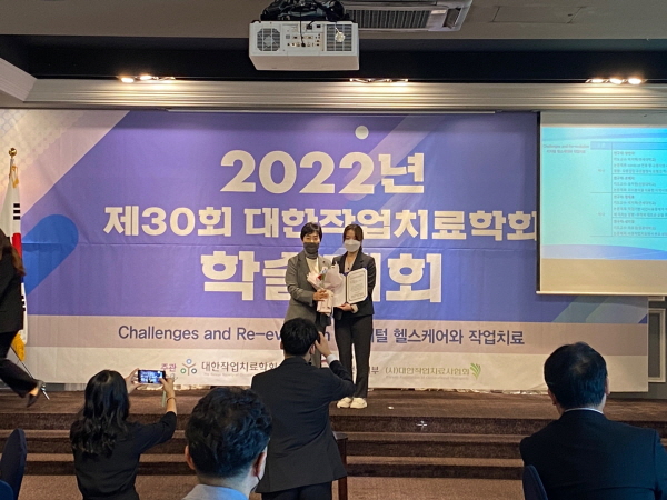 또한 건양대 일반대학원 의과학과(작업치료학전공)에 재학중인 최지현 박사과정생과 황호성 박사과정생도 김수경 지도교수와 함께 ‘직업재활에 참여하는 발달장애인의 시간사용과 작업균형’이라는 연구를 통해 우수논문상을 수상했다.