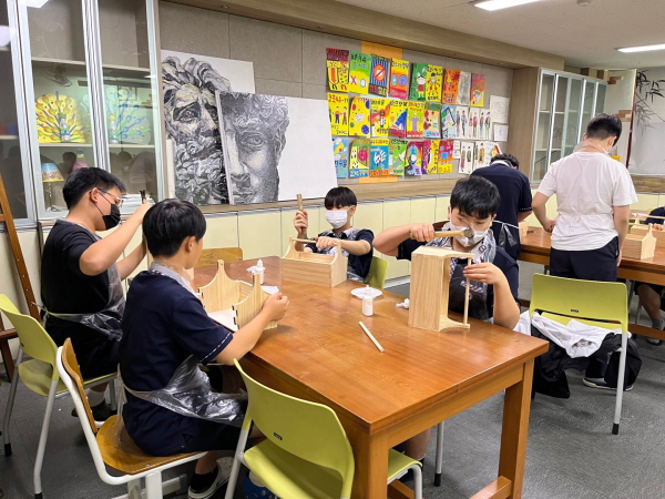 건양대 논산계룡진로직업체험지원센터를 통해 목공가 체험을 하는 지역 중학생들의 모습.jpg