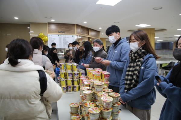 건양대학교(총장 김용하)가 13일과 14일 양일간 창의융합캠퍼스와 메디컬캠퍼스에서 기말고사를 맞아 학생들에게 컵라면과 삼각김밥을 나눠주는 간식 응원 이벤트를 펼쳤다.
