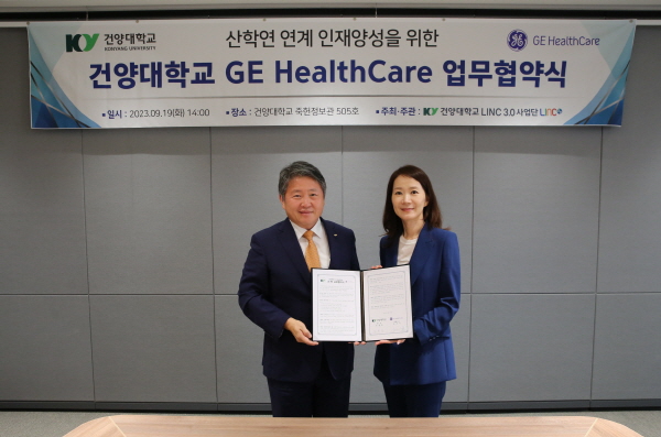 건양대학교(총장 김용하)와 GE헬스케어 코리아(대표 김은미)가 19일 건양대 메디컬캠퍼스에서 산학교육 및 연구 협력을 위해 MOU를 체결했다.