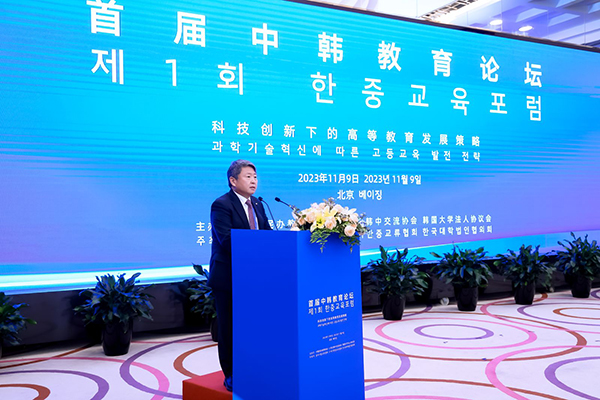 건양대학교 김용하 총장이 9일 중국 베이징 국제호텔에서 한국과 중국의 현 교육기관 고위인사와 지도자들이 만나 양국의 교육발전과 협력, 역할에 대해서 논의하는 ‘한‧중 교육고위지도자 포럼’에 참석했다.