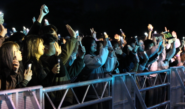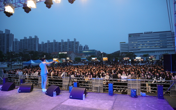 30일 저녁 건양대 대전 메디컬캠퍼스에서 열린 2024 한솔대동제 개막식에 모인 학생들이 열광하는 모습.jpg