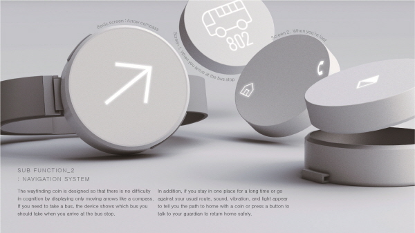 또한 시계와 목걸이 형태로 착용 가능한 길찾기 코인은 나침반처럼 화살표로 방향을 알려주며 보호자에게 통화할 수 있는 버튼을 눌러 안전하게 귀가할 수 있게 돕는 기능을 한다.