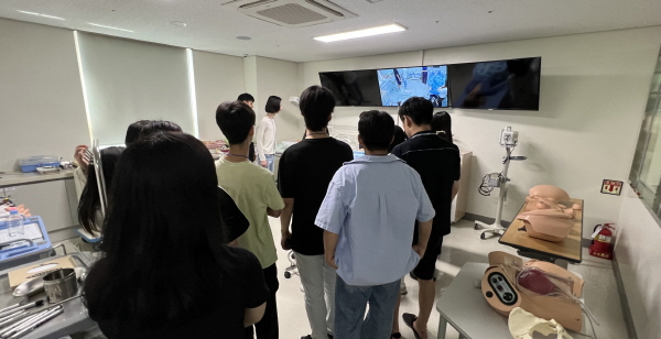 건양대 장애학생지원센터가 장애를 가진 고교학생의 대학진학을 돕기 위하 마련한 대학생활체험 프로그램에서 간호학과 실습실을 견학 중인 모습.jpg