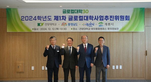건양대학교(총장 김용하)는 12일 오전 건양대 논산 창의융합캠퍼스 죽헌정보관에서 국방산업 중심의 지역발전을 도모하기 위한 제1차 글로컬대학추진위원회를 충청남도·논산시·계룡시와 함께 개최했다.