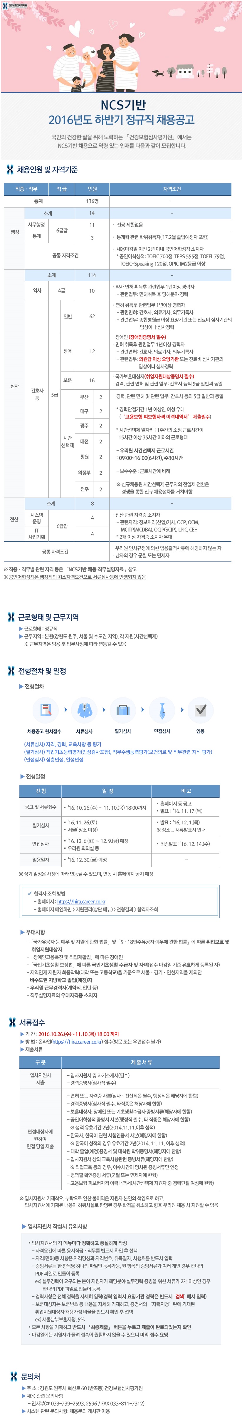 | 제목 | [취업] 건강보험심사평가원 NCS기반 2016년도 하반기 정규직 채용공고 | ||||