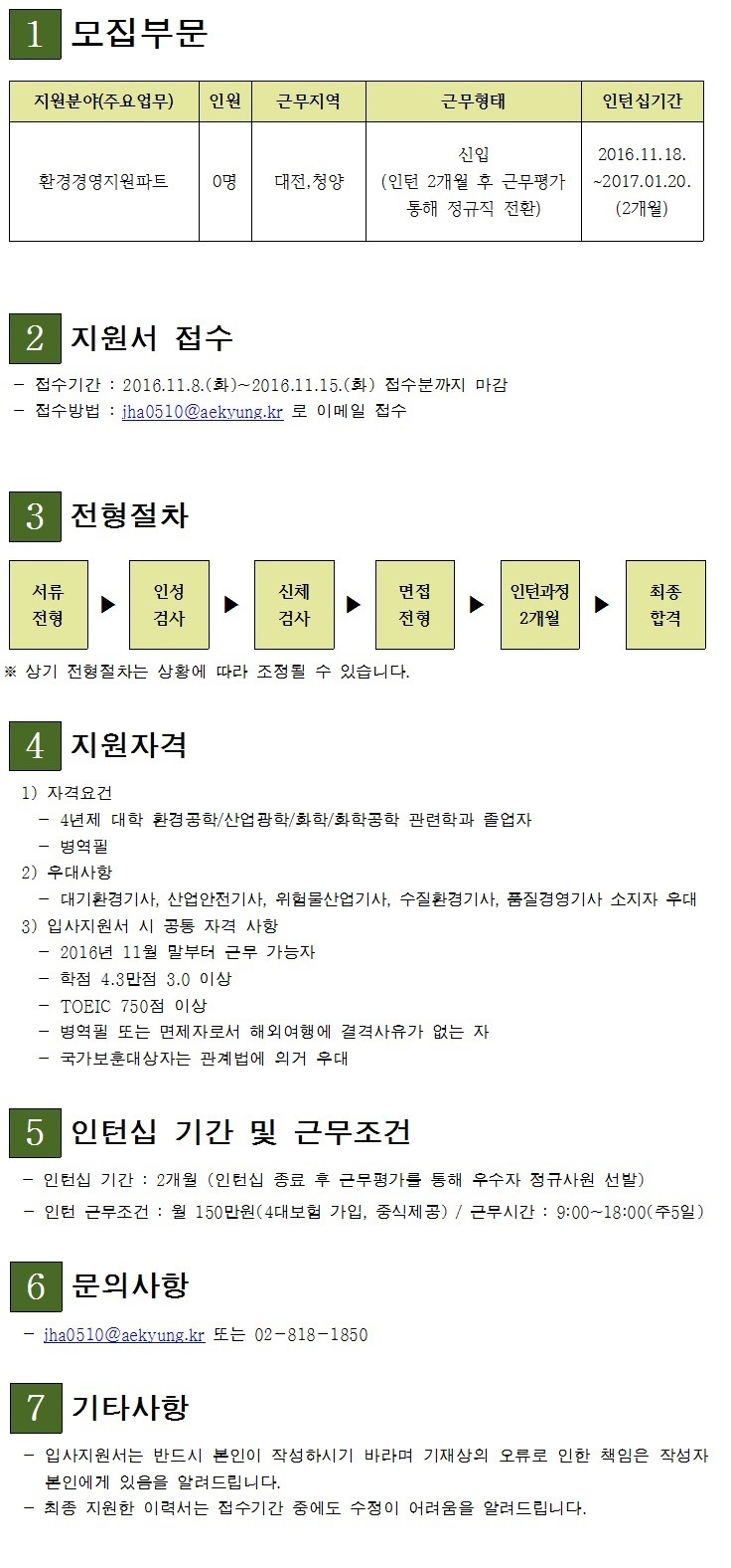 | 제목 | [취업] 애경산업 환경경영지원파트 신입 채용 안내 | ||||