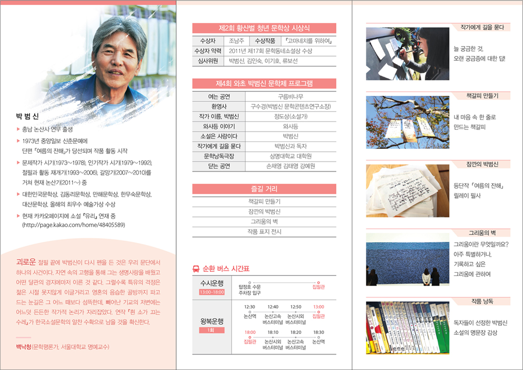 - 문의 : 박범신 문학콘텐츠연구소 041)730-5517