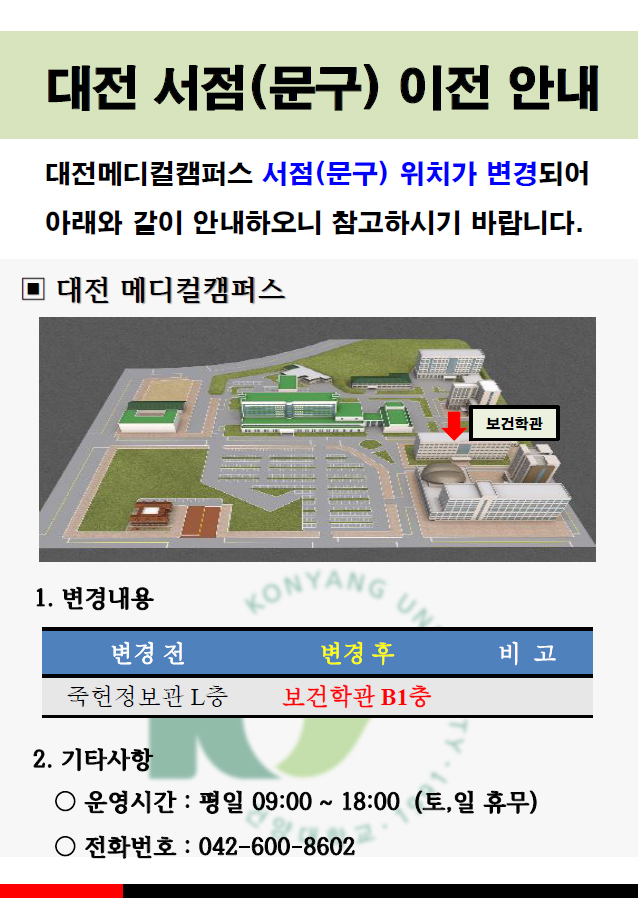| 제목 | 대전메디컬캠퍼스 서점(문구) 이전 안내 | ||||