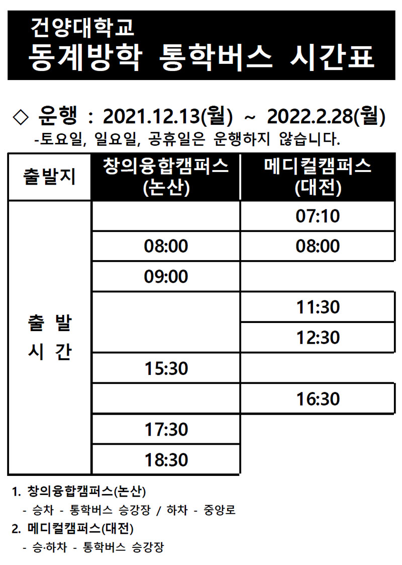 | 제목 | 2021학년도 통학버스 동계방학 시간표 안내 | ||||