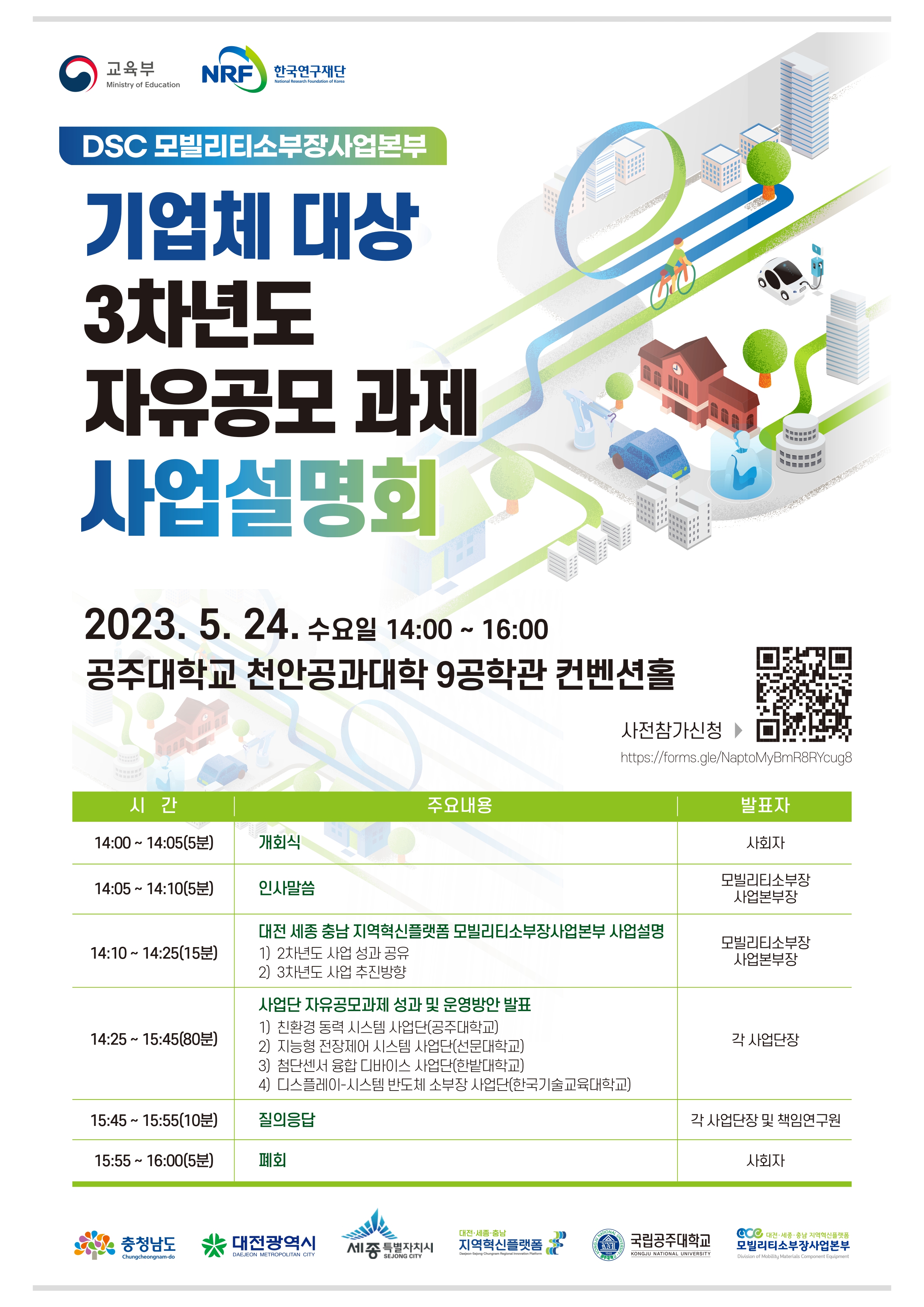 | 제목 | [DSC 모빌리티소부장사업본부] 기업체 대상 3차년도 자유공모과제 사업설명회 | ||||