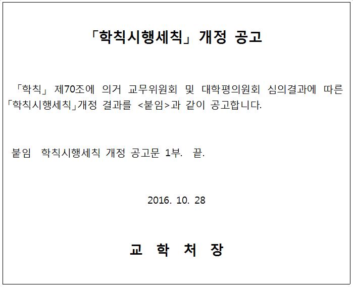 학칙시행세칙 개정 공고(2016.10.28).hwp