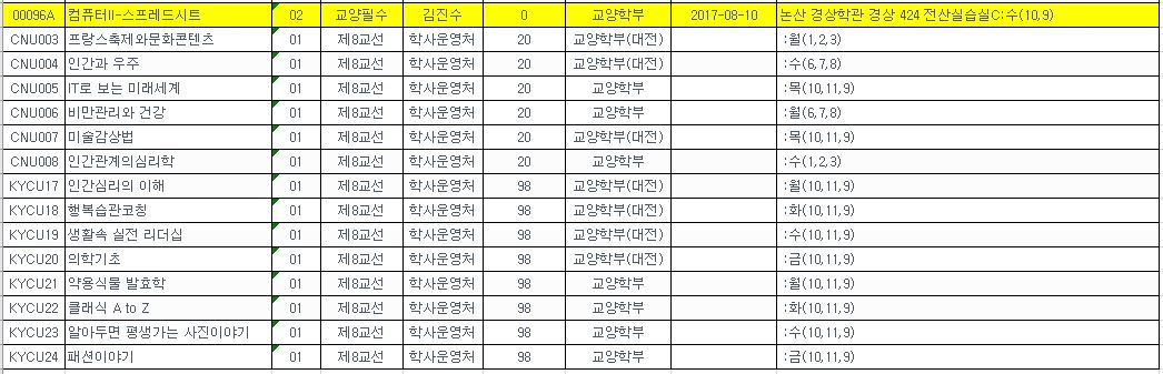 2017-2학기 사이버강좌 교과목 현황을 안내하오니 본인 수강신청 내역을 확인하여 주시기 바랍니다.