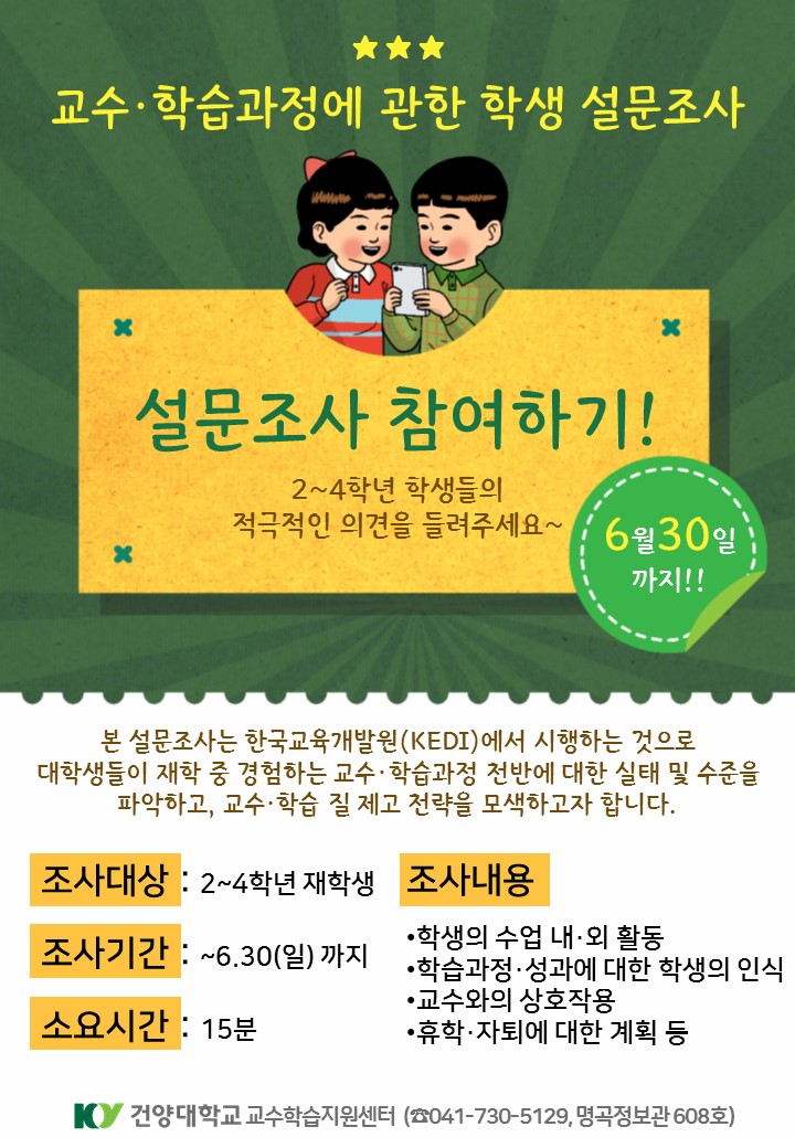 | 제목 | 2019 교수·학습과정 학생 설문조사 안내 | ||||