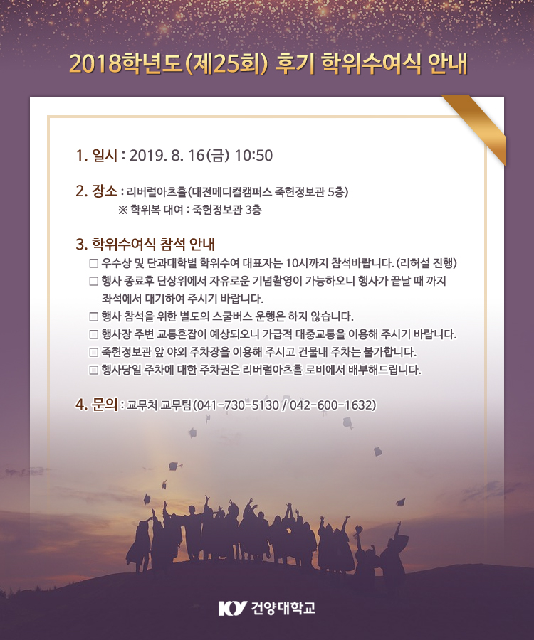 | 제목 | 2018학년도(제25회) 후기 학위수여식 안내 | ||||
