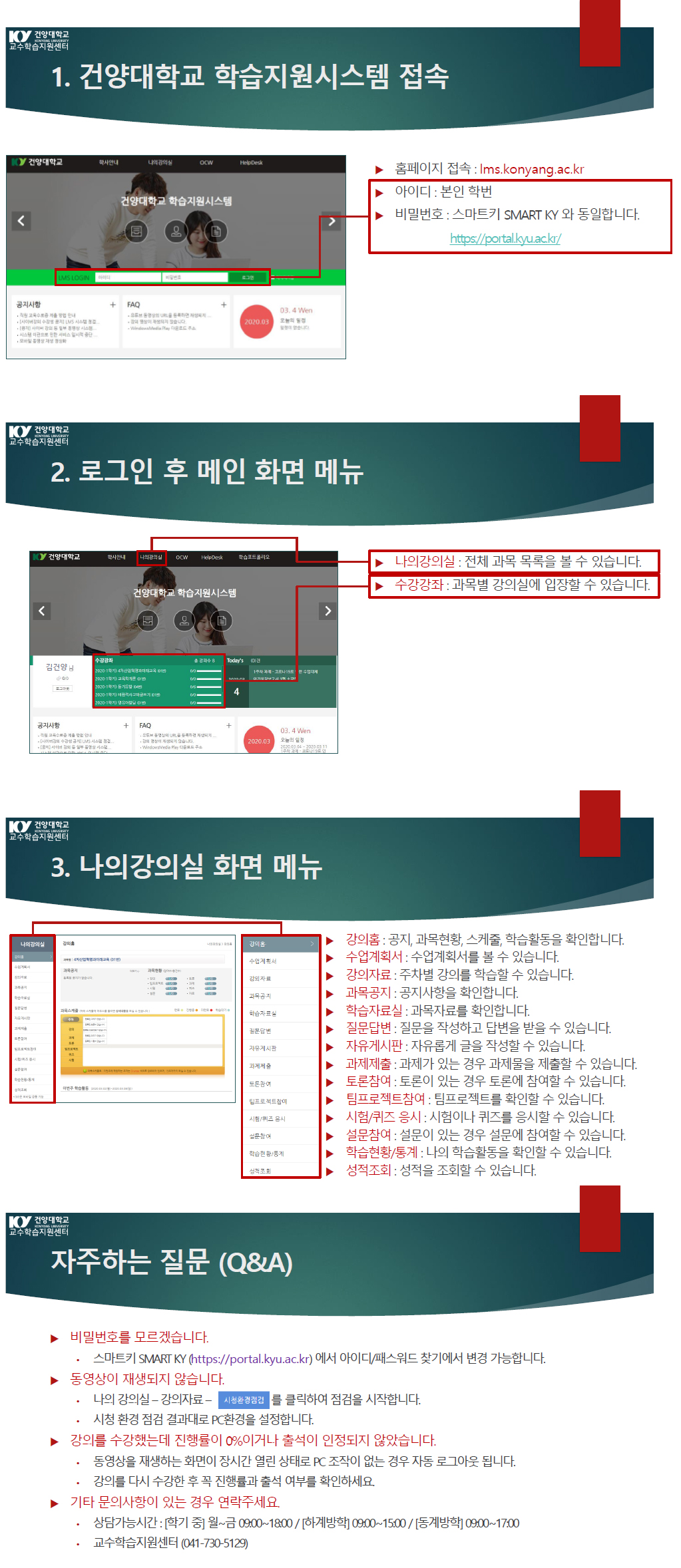 | 제목 | 건양대학교 학습지원시스템(LMS) 수강 안내(학생용) | ||||