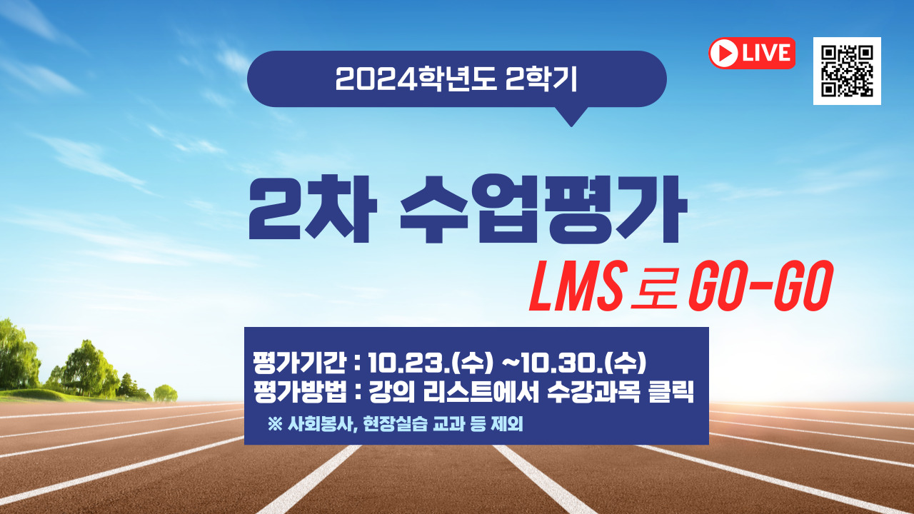 | 제목 | 2024학년도 2학기 2차 수업평가 및 성적공람 일정 안내 | ||||