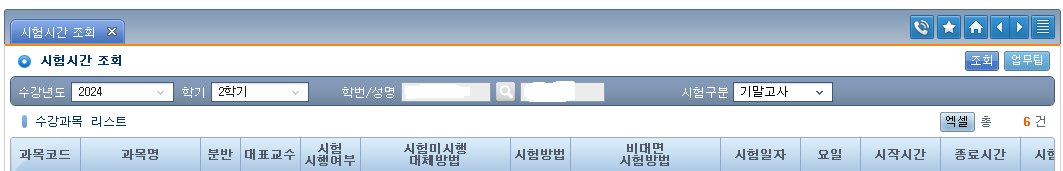 2024학년도 2학기 기말고사 시행 안내 □ 시험기간: 2024 .12. 9.(월) ~ 12. 13.(금) □ 시험운영방법: 대면교육(원격교과목 포함) □ 교과목별 시험시간 조회 ⊙ 유의사항 ▶ 시험일정이 확정 된 과목만 조회 가능 ▶ 조회가 되지 않는 과목은 담당 교수님께 개별 문의 ▶ 시험일정 및 고사장은 변경될 수 있으므로 시험 응시 전 최종 확인 필요 ▶ 학점교류과목은 해당기관 필히 확인 [시험관련 문의] 창의융합 캠퍼스 : 041-730-5122 메디컬 캠퍼스 : 042-600-1655 |
