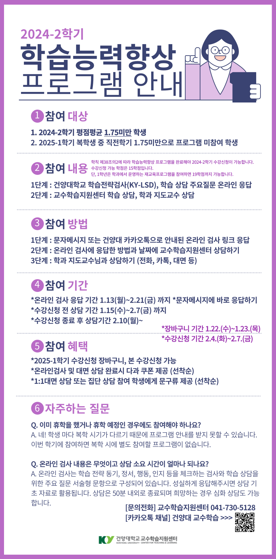 『 (대상자 필수) 2024-2 학습능력향상 프로그램 시행 안내 』글의 상세내용을 확인하는 표로 제목, 부서명, 등록일, 조회, 첨부, 내용으로 나뉘어 설명합니다.