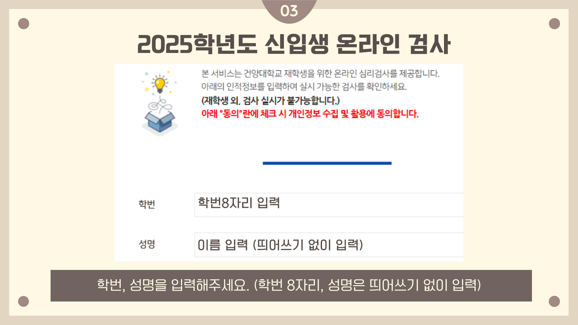 | 제목 | 2025 신입생 온라인 검사 실시 안내 | ||||