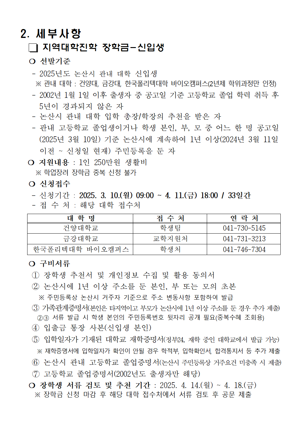 2025년도 재단법인 논산시장학회 장학생 선발 공고문(발췌본).hwp