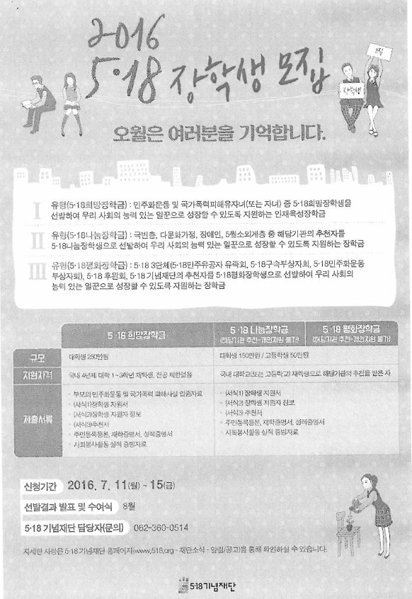 | 제목 | 2016년 5.18 장학생 모집공고 | ||||