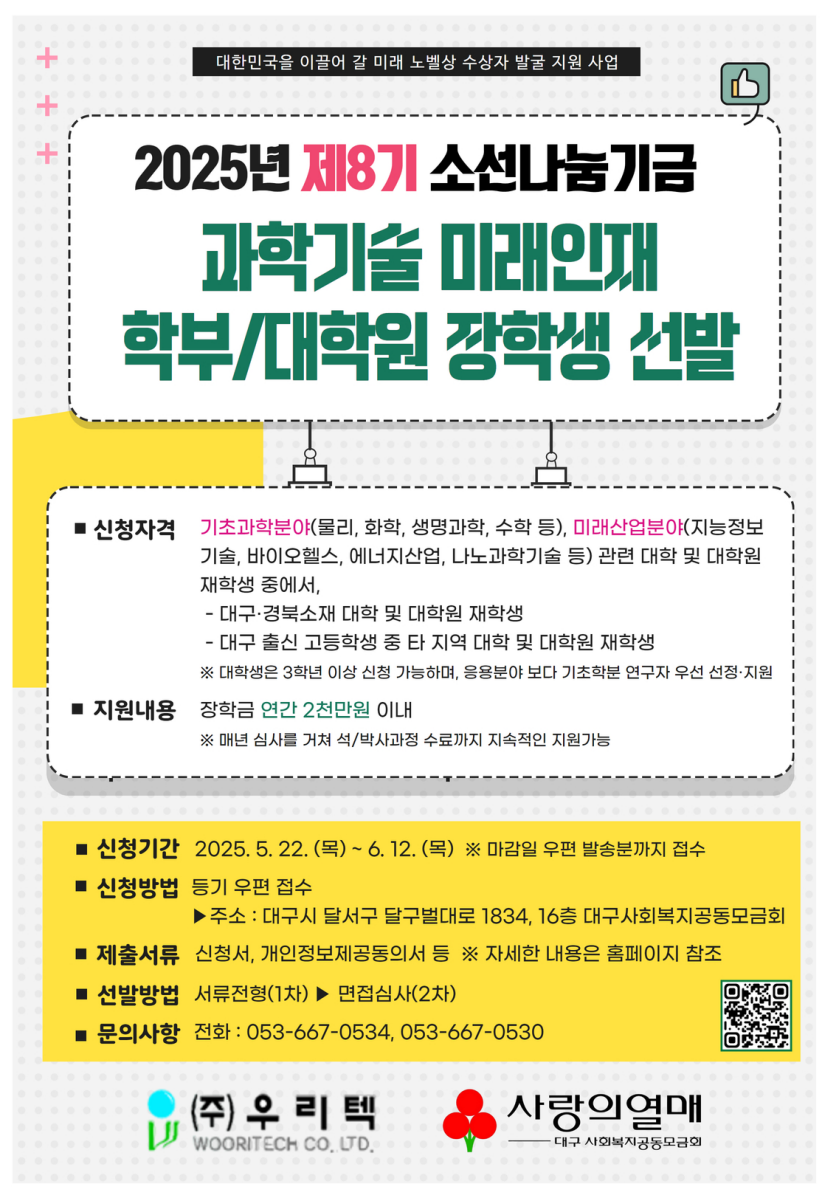 | 제목 | 2025년 소선나눔기금 과학기술분야 대학생 장학금 지원사업 안내 | ||||
