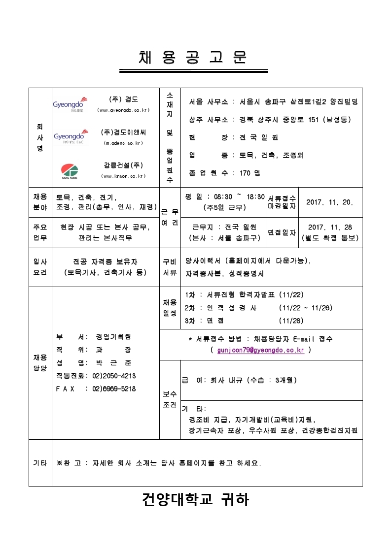 | 제목 | (~11/20) 경도그룹 신입사원 공개 채용 안내 | ||||