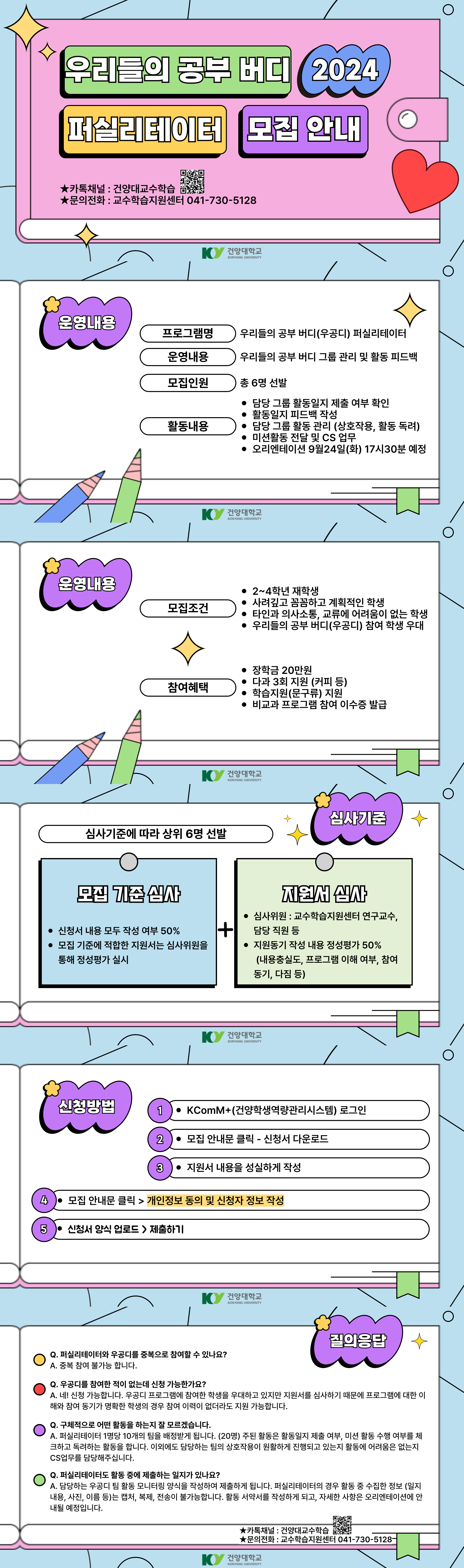 | 제목 | 2024-2학기 우리들의 공부 버디(우공디) 퍼실리테이터 모집 안내 | ||||