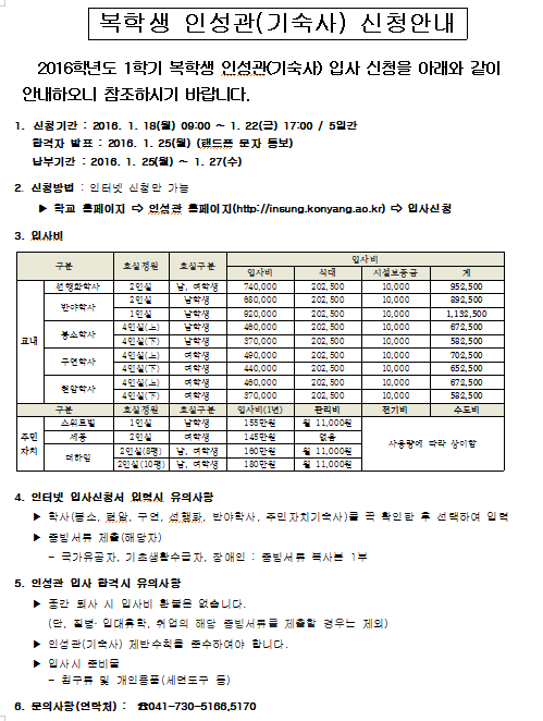 | 제목 | 2016-1학기 복학생 인성관 신청안내 | ||||