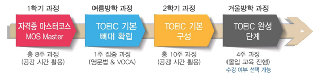 ※ 학기 중 과정(4~6월, 9~12월)은 공강시간 및 방과 후 시간을 활용하여 자율적으로 선택가능하며 본인이 원할 시 횟수에 관계없이 반복하여 수강할 수 있음