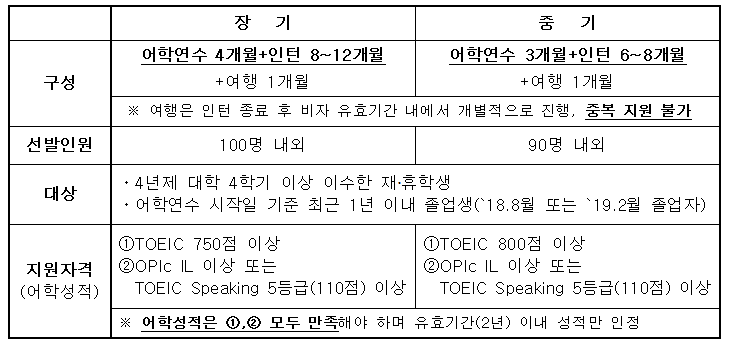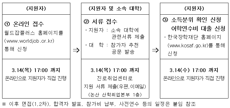 2. 프로그램 구성 및 지원자격 3. 관련 문의 가. 프로그램 지원 및 서류 접수 : 진로취업센터 고동연(☎041-730-5797) 나. 지원 자격, 면접 등 : 국립국제교육원 해외유학인턴팀(☎02-3668-1448,1462~1467) 월드잡플러스 홈페이지 Q&A (www.worldjob.or.kr)