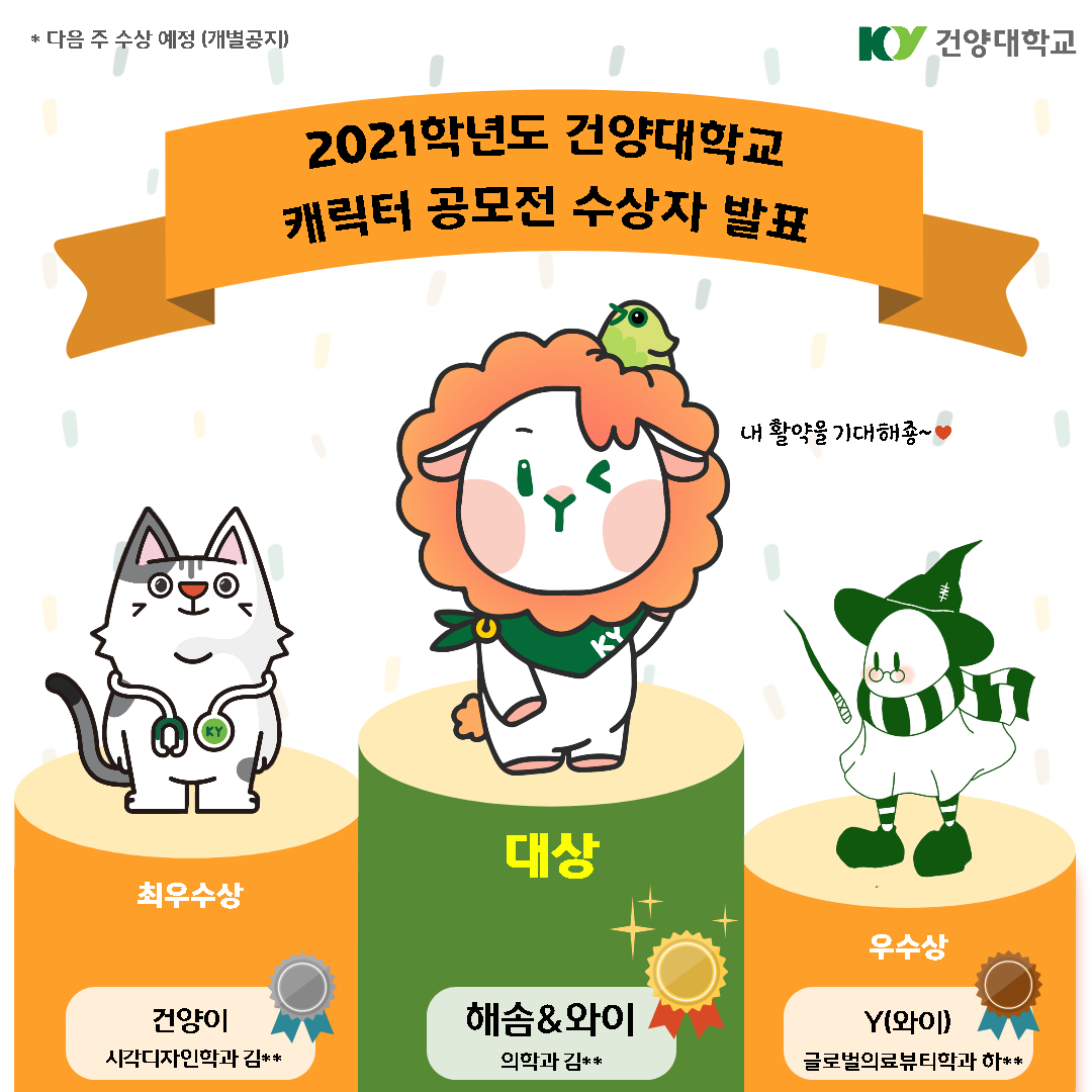 | 제목 | 2021학년도 캐릭터 디자인 공모전 수상자 발표 | ||||