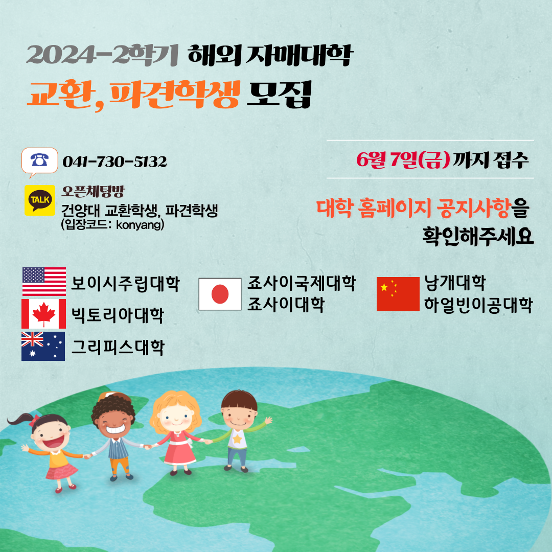 | 제목 | 2024-2학기 해외 자매대학 교환, 파견학생 모집 | ||||