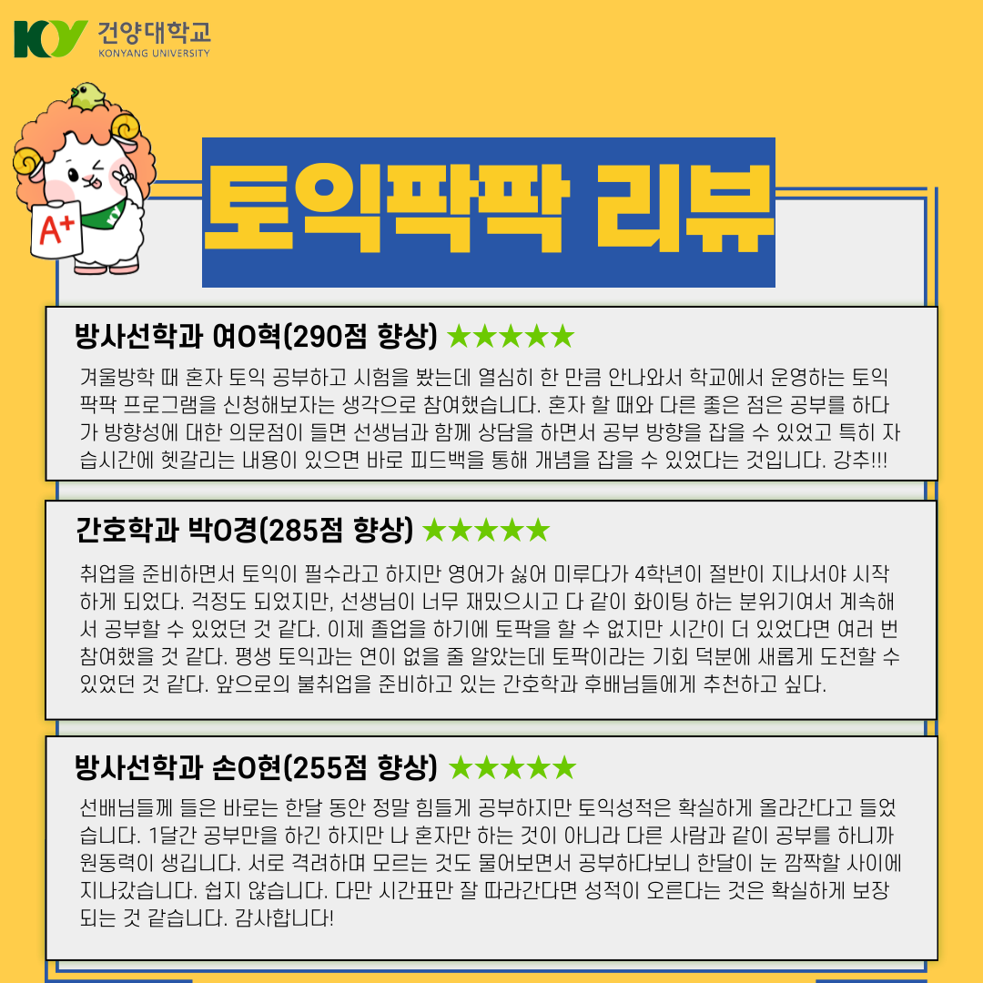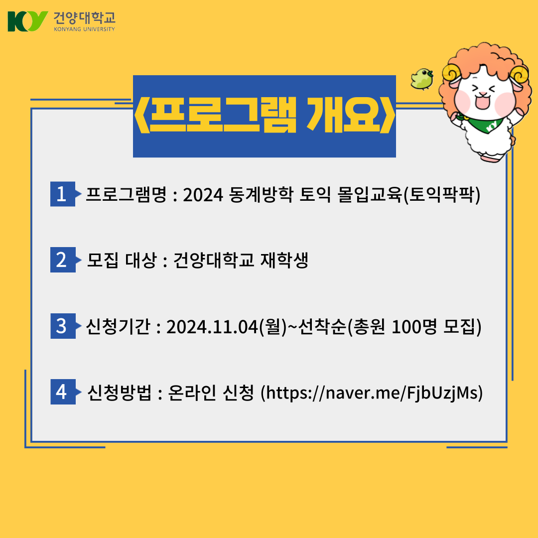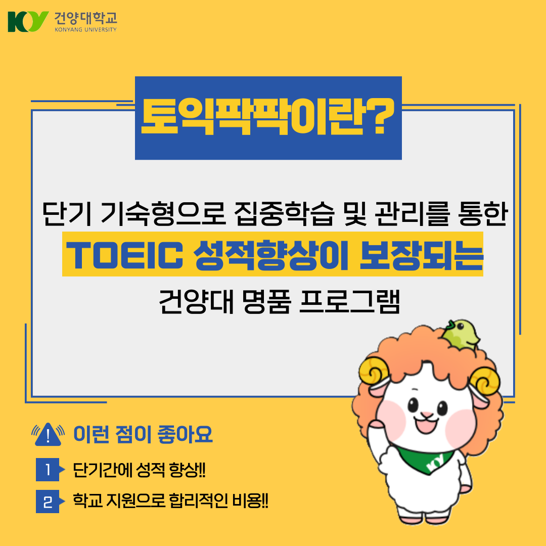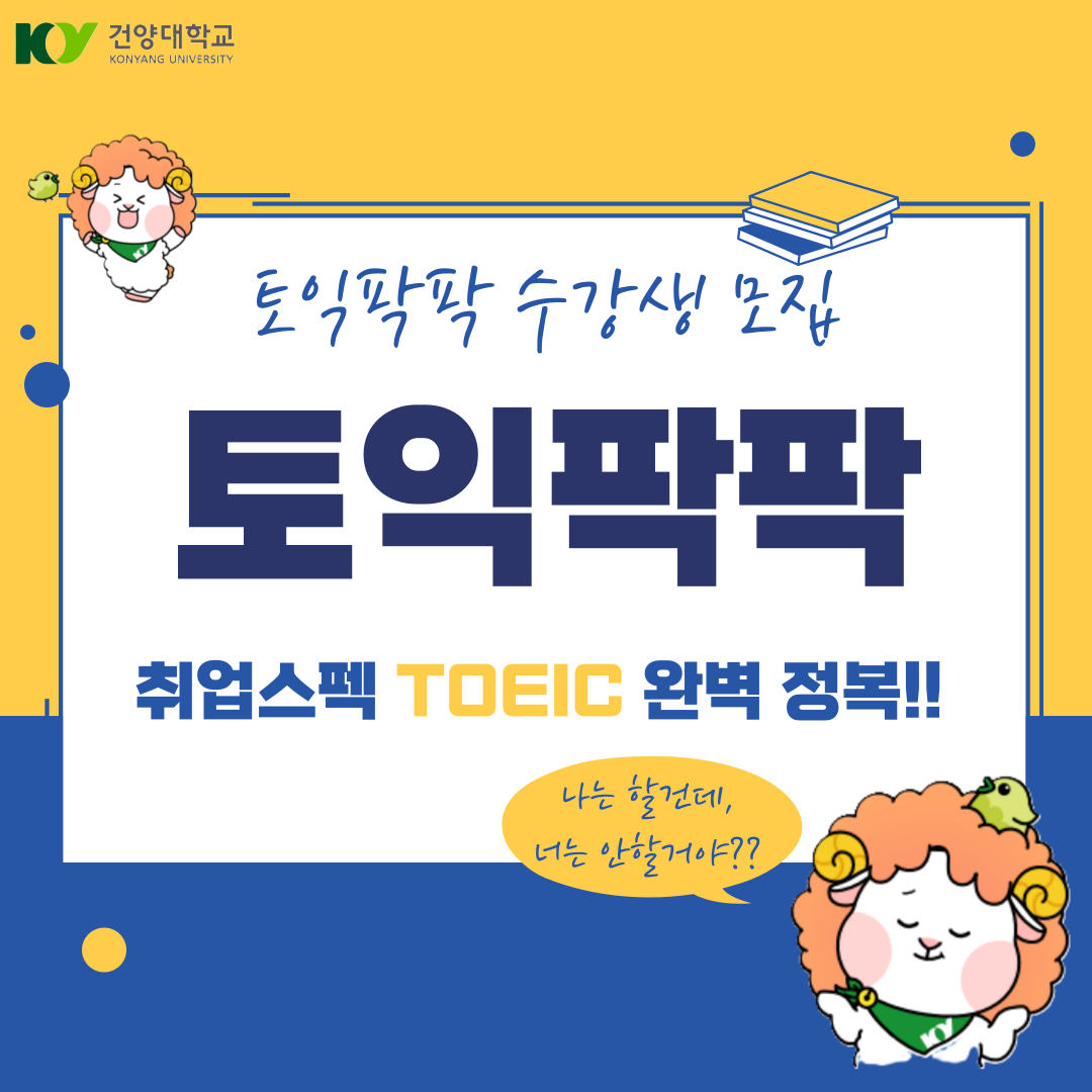 | 제목 | 2024학년도 동계방학 토익몰입교육(토익팍팍) 수강생 모집 | ||||