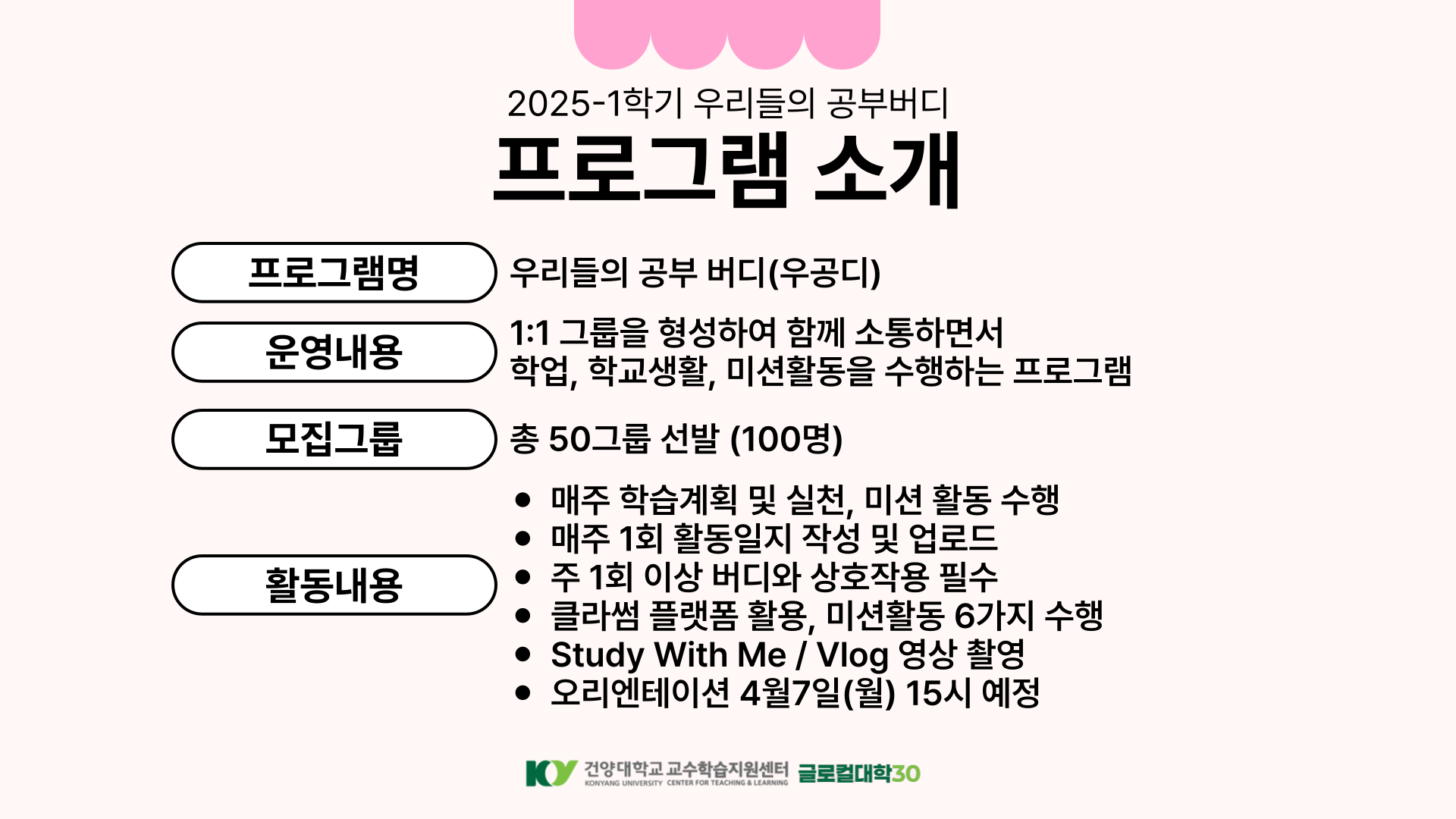 | 제목 | 2025-1학기 우리들의 공부 버디(우공디) 그룹 모집 안내 | ||||