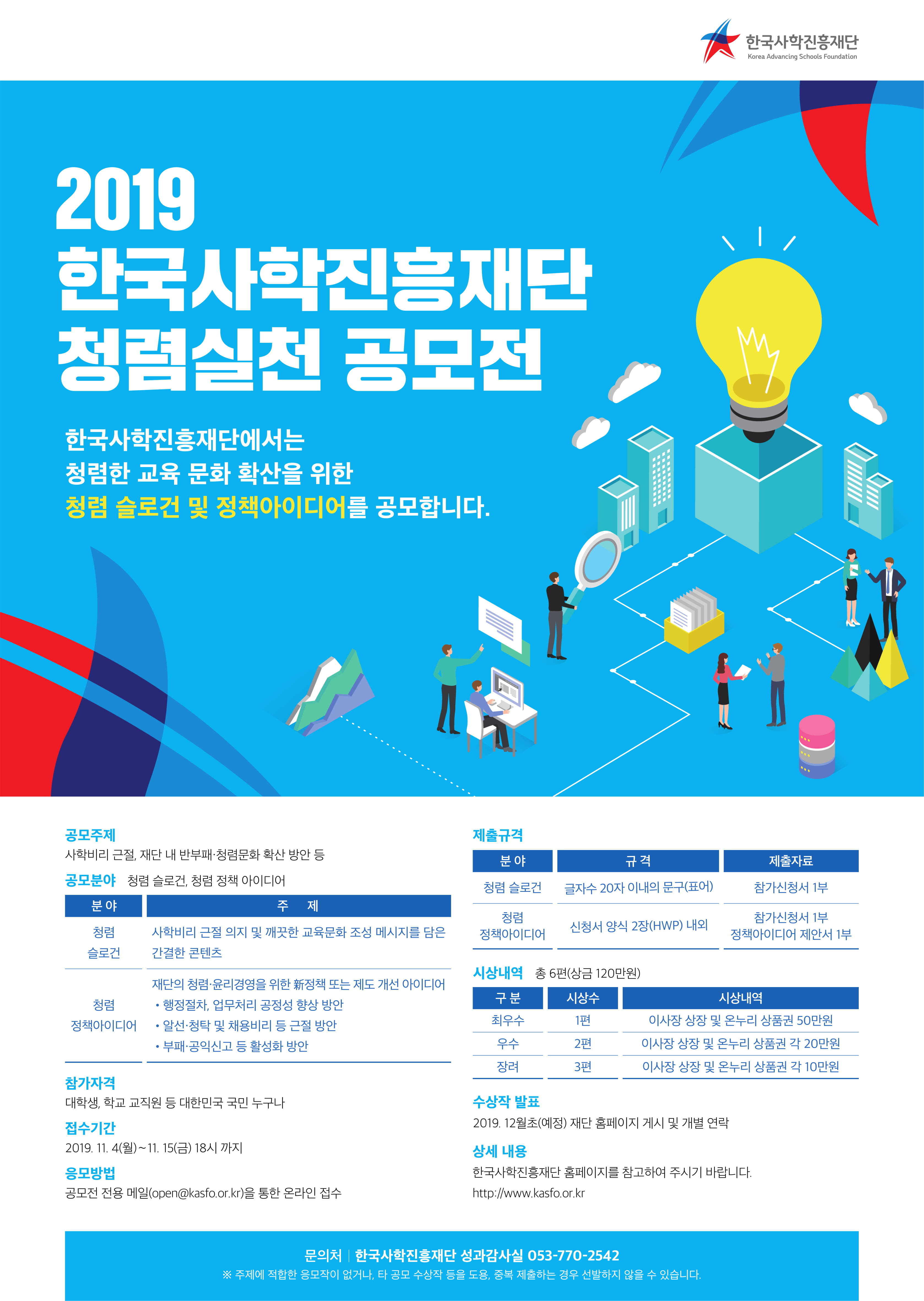 | 제목 | 2019년 한국사학진흥재단 청렴실천공모전 안내 | ||||
