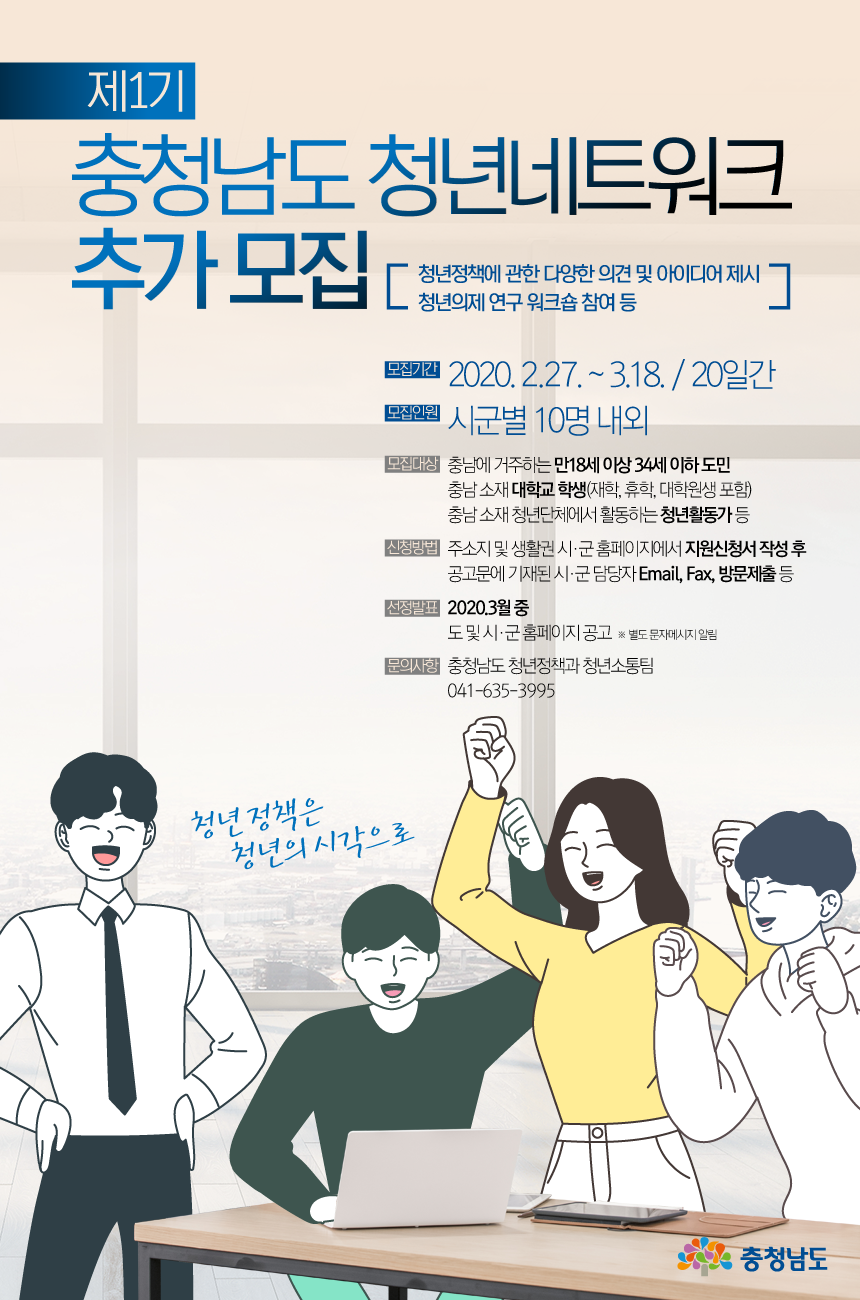 | 제목 | 「충남청년네트워크」위원 추가모집 안내 | ||||