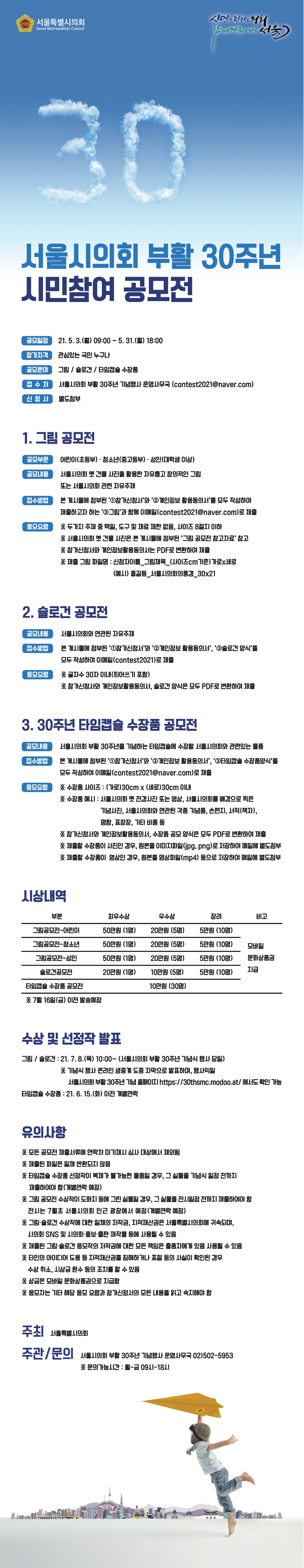 | 제목 | 「서울시의회 부활 30주년」 시민참여 공모전 안내 | ||||